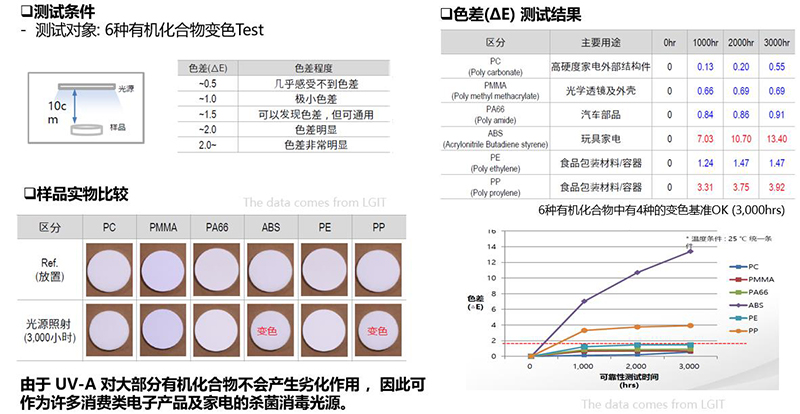 在長時間使用下不變色、不劣化;同時光輸出維持率高,穩(wěn)定性佳,因此可廣泛用于各公共場所與家居消費類電子產(chǎn)品中。