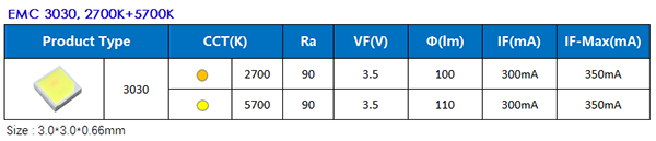 針對(duì)此需求,天電光電開(kāi)發(fā)的3030雙色溫產(chǎn)品,解決了傳統(tǒng)間距式混光方案性能差,